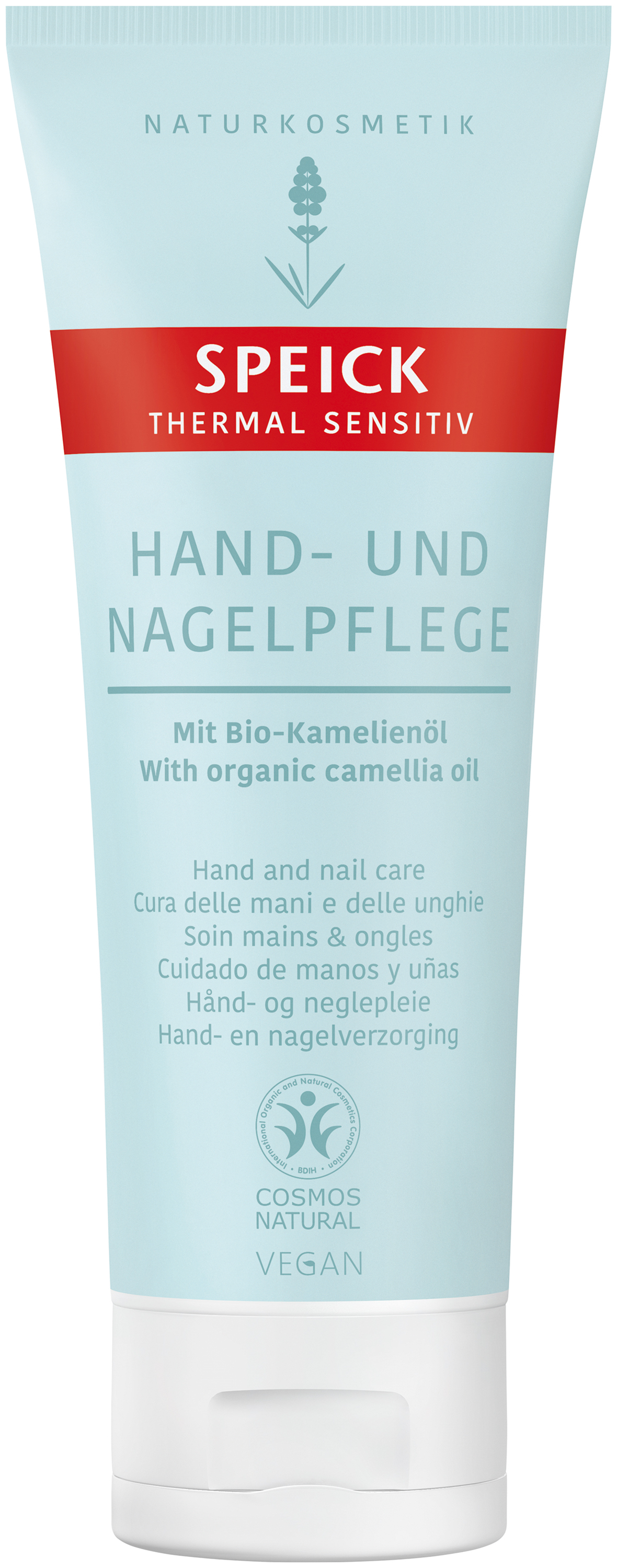 Kieselsäurehaltiges Thermalwasser, Sojaöl (kbA) nicht genmanipuliert, Glyzerin (pflanzlich), Weingeist, Aloe Vera Gel (kbA), Emulgator (pflanzliche Basis), Neutralöl (pflanzliche Basis), Feuchtpflegekomponente (Zuckerbasis), Zuckerrüben-Extrakt, Kamelienöl (kbA), Speick-Pflanzenextrakt (Pflanze aus kontrolliert biologischer Wildsammlung), Flügeltang, Essbarer Riementang, Braunalgen-Extrakt, Vitamin F, Maisstärke, Schilfrohr-Extrakt, Indisches Brot-Pilz-Extrakt, Rosmarin-Extrakt (öko.), Natürliches Vitamin E, Feuchtpflegekomponente (Traubenzucker), Feuchtpflegekomponente (Mannazucker), Verdickungsmittel vegan (natürlicher Mehrfachzucker), Komposition mit ätherischen Ölen, Salz der Benzoesäure (Konservierung), Komponente ätherisches Öl